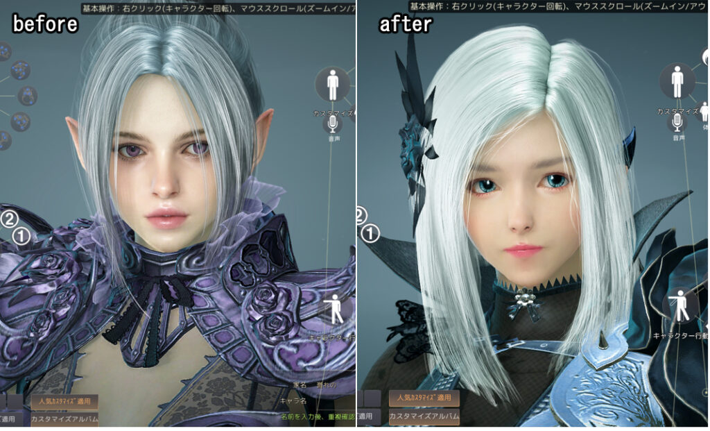 全部を真似する必要はないですが目に関しては参考にしていただければかなりデフォルトのDKからかけ離れたキャラメイクが可能です!