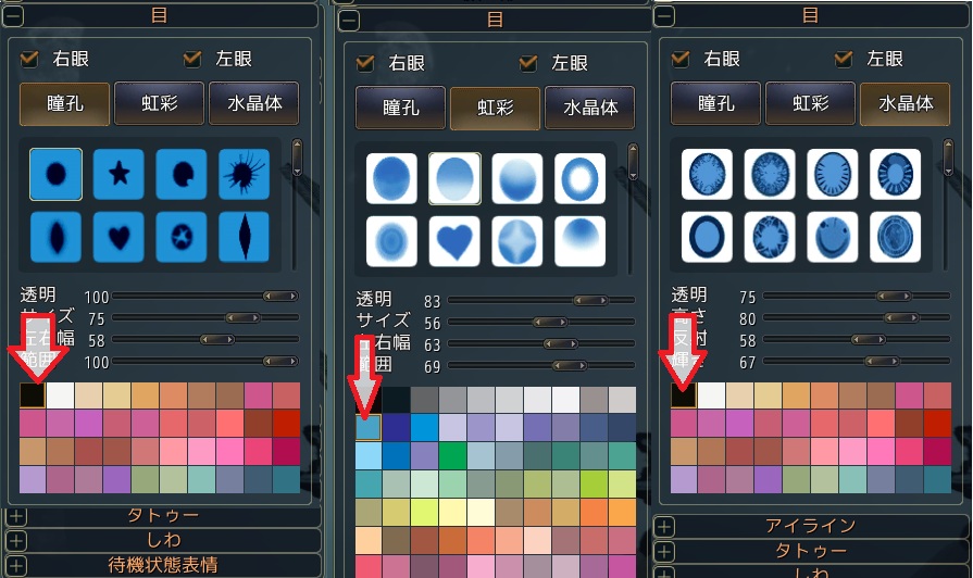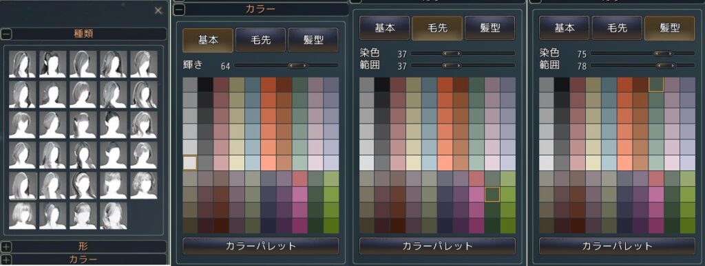 髪型とカラーパレットを上記のようにすることで再現が簡単に可能