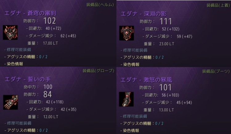 | [エダナの防具] 滅神の英雄 | リトバン山脈のNPC <滅神の意志>エダナの破片 | エダナの防具4部位装着 |