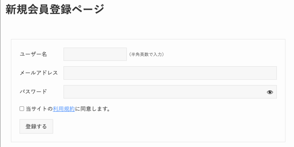 こちらにある『ユーザー名』『メールアドレス』『パスワード』を入力していきましょう、終えたら当サイトの利用規約に同意しますをクリックして登録するをクリックすれば登録完了です!