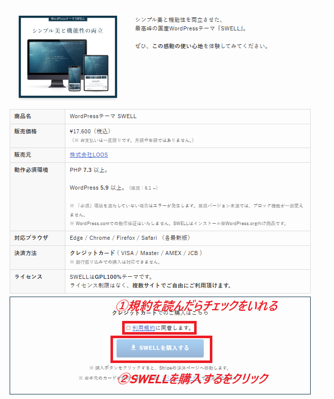 購入画面に進みますので規約を読んだらチェックを入れて購入しましょう