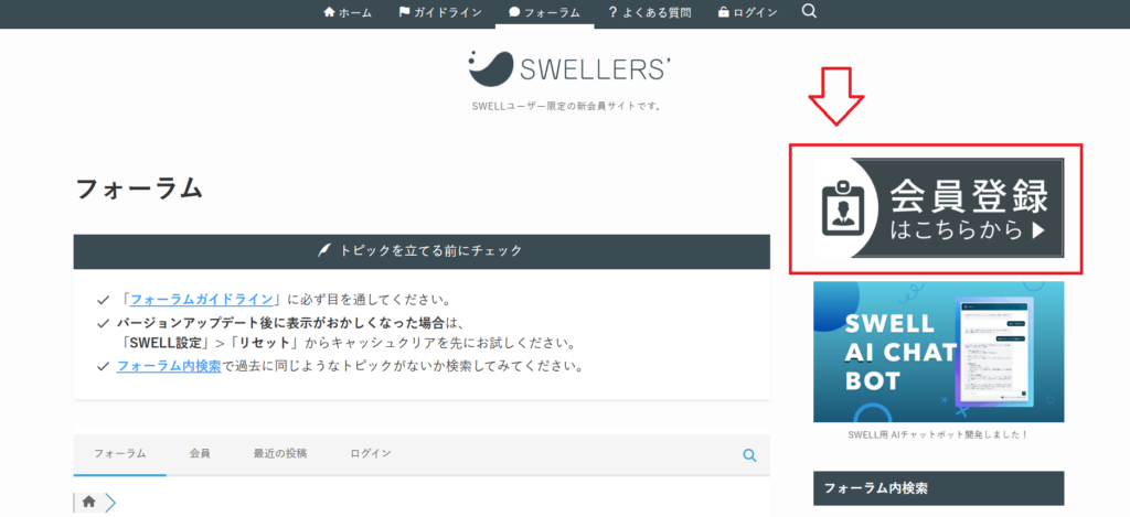 フォーラムをクリックしましょう、すると画像のような『会員登録はこちらから』というアイコンがありますのでそれをクリックします